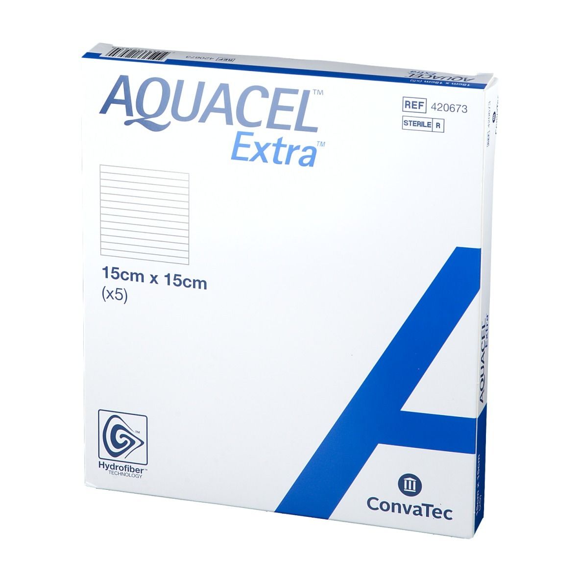 O Curativo Aquacel Extra primário, estéril, não aderente e macio, em forma de placa. Absorve grandes quantidades de exsudato e é composto por duas camadas de hidrofibra 100% carboximetilcelulose sódica (Tecnologia Hydrofiber®), costurado com fibras de celulose regenerada, altamente resistente.