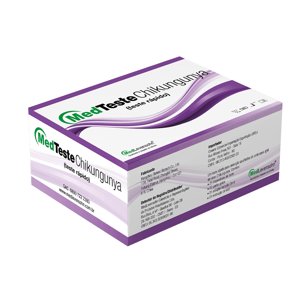 A Chikungunya é uma infecção viral causada pelo vírus da Chikungunya (CHIKV) transmitida pela picada da fêmea do mosquito Aedes aegypti e Aedes albopictus infectada. O período de incubação do vírus no homem dura, em média, de 3 a 7 dias, podendo variar de 1 a 12 dias. O período de viremia no ser humano pode durar até 10 dias, e, geralmente, inicia-se 2 dias antes da manifestação dos sinais. A infecção aguda é caracterizada por rash cutâneo, febre e dor intensa nas articulações (artralgias) que duram, em média, 7 dias.O MedTeste Chikungunya ML02 é um teste rápido para a detecção qualitativa de anticorpos IgG e IgM do vírus da Chikungunya para auxiliar no diagnóstico das infecções pelo vírus.A coleta da amostra é realizada através de sangue total (ponta de dedo), soro ou plasma. O teste possui alta sensibilidade e especificidade e o resultado fica pronto em apenas 15 minutos.